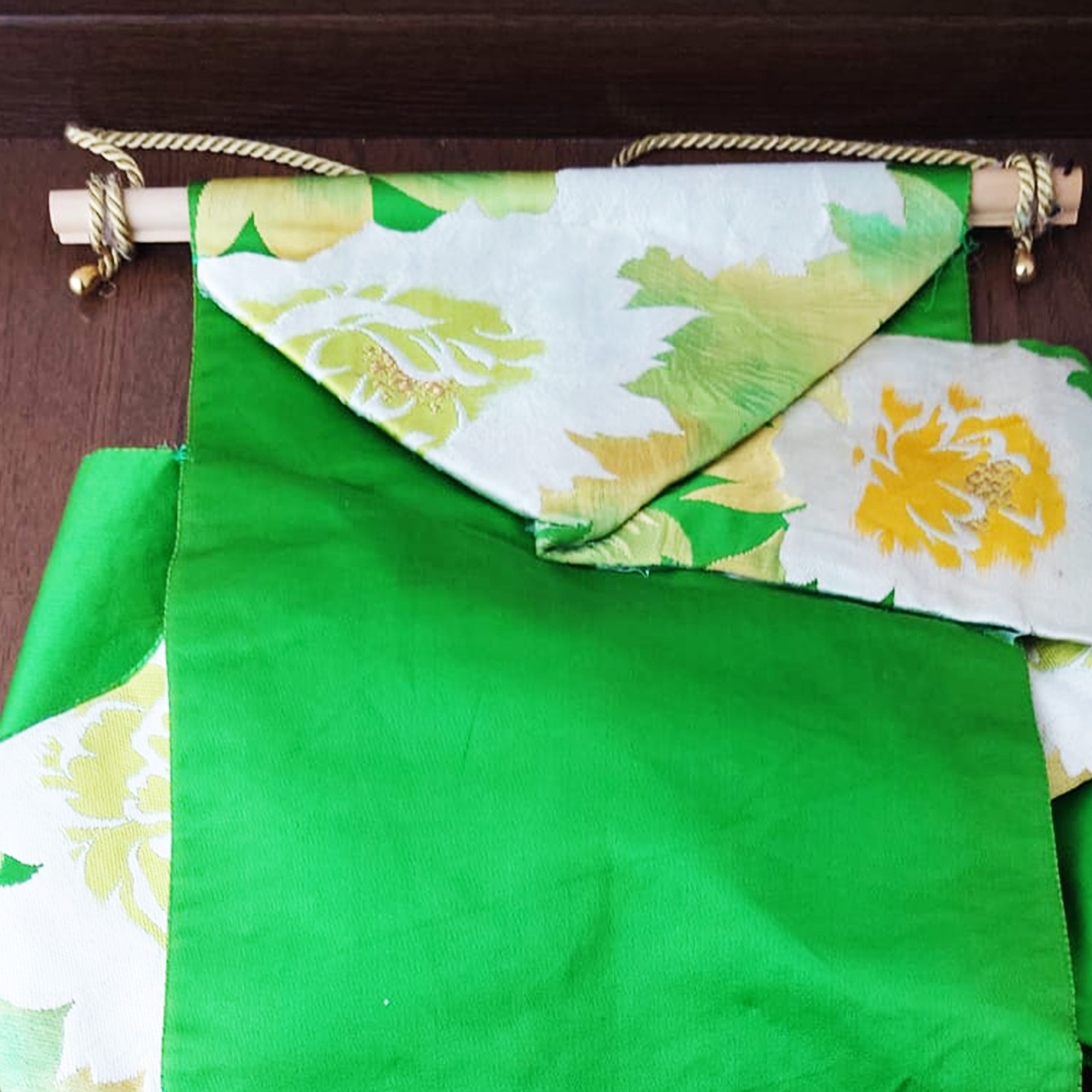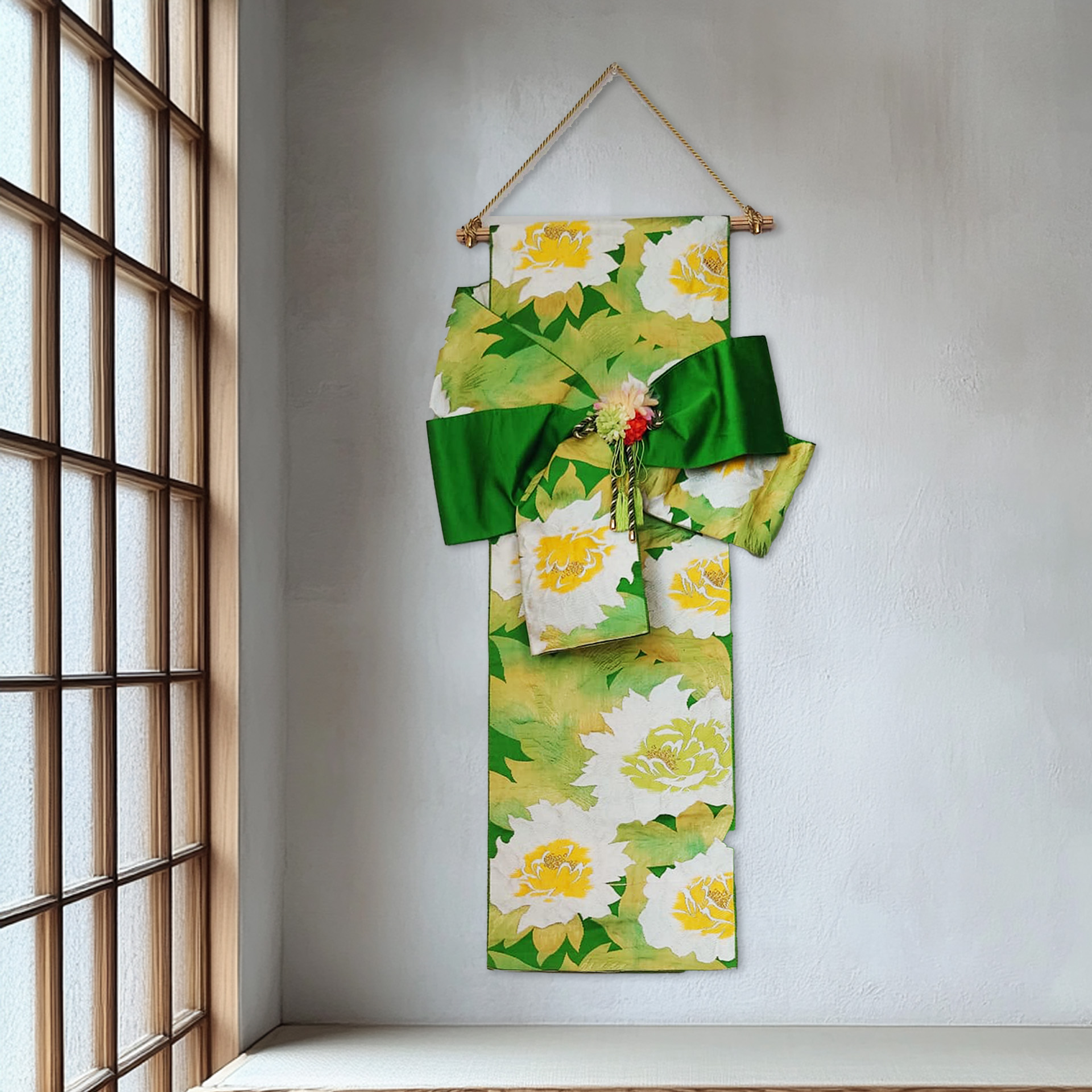 Dieses dekorative Stück verleiht jedem Raum einen Hauch von Individualität und Eleganz und ist perfekt für alle, die japanische Kultur, Textilkunst und einzigartiges Innendesign schätzen.